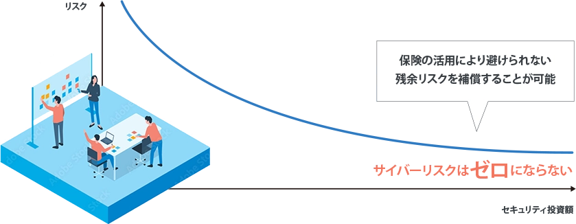 しかし、どんなに対策をとっていてもサイバー攻撃・事故のリスクをゼロにすることはできません。そのリスクに備えるための手段が、サイバー保険です。